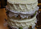 Dziekuje wszystkim za pochwaly :)))) Sukienki na kazdy tort..uszylam z bialej organzy i bialej wstazki ze srebrnym brzegiem. Brzeg wzmocniony drucikiem. Biale cienkie wstazeczki sluzyly do zawiazania dekoracji z dzikiego wina i malych tekstylnych, bialych rozyczek. :)))