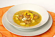 Zupa ogórkowa z ziemniakami na rosole z kaczki.
