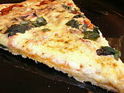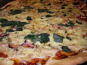 U mnie pizza z sosem pomidorowym, szynką, serem gorgonzolla dolce i zielonymi oliwkami :)