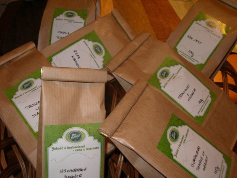 Nagroda w konkursie Moc Herbaty dziś do mnie dotarła :) Wybrane przeze mnie herbaty, kuszą swoim zapachem, który dyskretnie wydobywał się już przed rozpakowaniem przesyłki. Herbaty są gustownie zapakowane i ręcznie podpisane, pięknie będą prezentować się w mojej kuchni :) Dziękuję organizatorom i sponsorom za zorganizowanie tego konkursu. Bardzo się cieszę, że wygrałam, bo normalnie pewnie nie byłoby mnie stać na zakup herbat za taką kwotę. A oto nagroda w całej swej okazałości :)