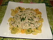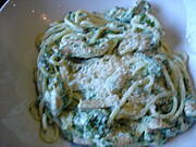 Makaron pene z brokułami w sosie śmietanowo-serowym.