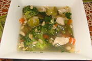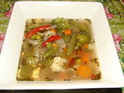 ogromny gar zupy jarzynowej z dużą ilością kalafiora...