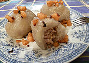dzisiaj w stylu afrykanskim, pulpeciki wolowe nadziewane oliwkami, moja wariacja tego przepisu jest ze zamieniam sos tymiankowy na koperkowy lub pomidorowy (tymianek w polaczeniu z czarnymi oliwkami to jak dla mnie zbyt duzo nijakiej goryczki) a oliwki czarne zastepuje zielonymi nadziewanymi papryka, z dodatkow bedzie ryz dziki, mix salat z sosikiem cytrynowym a na deser robie torrijas :) lekki to obiadek nie bedzie ;)