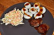 Piątek: jajka w sosie chrzanowym, ziemniaki i surówka z pekinki.