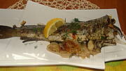 Zupa rakowa z jajkiem przepiórczym w koszulce, kluseczki ze szczupaka w sosie trybulowym o nutce francuskiego wermuthu "Noilly prat", frytki...deseru nie było bo musiał się uczyć do klasówki z religii....