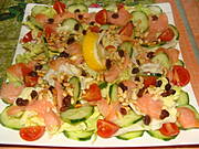 Dzisiaj tylko sałatka z łososia wędzonego inspirowana przepisem Bodka, sosy dwa : oliwkowo-koperkowo-cytrynowy i majonezowo-czosnkowy.