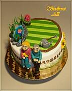 To mój pierwszy torcik z personalizowaną figurką. Wielka szkoda, że zdjęcie jakie dostałam było zamazane i mało czytelne, ale i tak podobno bardzo mocno wychwyciłam podobieństwo.
