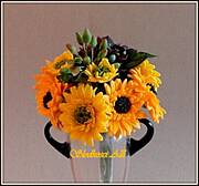 Ostatecznie zmieniłam bukiecik. Niestety z niekorzyścią, na dworze ciepło i parno. Chciałam zrobić większy ale wiele kwiatków zaczęło gubić płatki, bo nie zdążyły dostatecznie wyschnąć. Wyszedł jakiś krzywy.