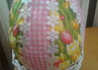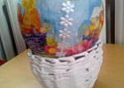 Koszyczki sa zrobione z wikliny papierowej a jajka to balony oklejone papierem i pomalowane biala farba a pozniej mozesz okleic serwetka albo inaczej ozdobic .Pozdrawiam