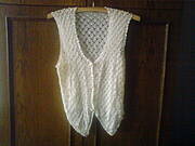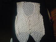 W ciągu 3 lat zrobiłam tką oto kamizelkę z perełkami. Oczywiście nie robiłam jej cały czas. Najdłuższa przerwa w pracy to 14 miesięcy. Wczoraj wieczorem dorobiłam guziczki i gotowe. Fotki nie bardzo ale kamizelka jest z jedwabnego kordonka i dodatkowo perełki ją obciążają. Ja jestem jednak z niej bardzo dumna , bo to 2 rzecz z ubrań które zrobiłam :)