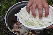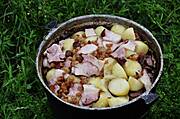 W naszym kociołku było: ziemniaki, boczek, cebula, kiełbaska, sól, pieprz, smalec, kapusta,
