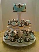 Oto zdjecia z netu dla przykladu, zreszta poszukaj sobie w necie zdjec wrzuc haslo cupcakes na komunie mysle ze to dobry pomysl i przyozdobic mozna wg wlasnego gustu;