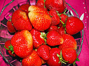 Dzisiaj upolowałam z męzem truskawki.Facet przywiózł na zieleniak ok godz..15 pól samochodu. Chcąc to najszybciej upłynnić obniżył cenę ( i w końcu ktoś zmądrzał a ja skorzystałam). Wzięłam 8 koszyczków po 6,50/kg. Niedziela upłynęła truskawkowo. Nawinęły się dwie mamy, plus ja z mężem- raz, dwa, trzy i po "kłopocie". A po pracy zrobiliśmy drugą kawusię, do tego ciasto z galaretka i truskawkami i deser truskawkowy. To oczywiście zrobione wczoraj z innej dostawy. Jestem zadowolona!!