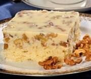 Dzisiaj sąsiadka przyniosła mi trochę ciasta które zostało jej z komunii syna (nie piekła sama tylko zamówiła w cukierni) i jeden kawałek bardzo mnie zainteresował. Był to biszkopt z kremem (prawdopodobnie krem budyniowo-maślany) a na wierzchu były rodzynki polane białą polewą. Napewno nie była to czekolada, ale bardzo gęsta maź która była pyszna. Szukałam podobnego przepisu ale nie znalazłam, może ktoś wie co to było?