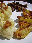 Do tego kalafior z parowaru i pieczarki z patelni smażone na maśle.