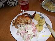 Bitki wieprzowe z ziemniakami i surówką z białej kapusty