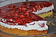 Biszkopt z bitą śmietaną, truskawkami, galaretką i dżemem z czarnej porzeczki (domowy). MNIAM!