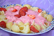 Dzisiaj: reszta spagetti, naleśniki w paski z serem polane sosem truskawkowym.