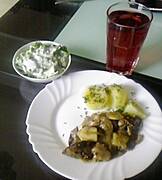 wczoraj resztka ogórkowej, ziemniaczki i wątróbka wieprzowa, do tego małosolne