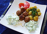 Zupa ogórkowa a na drugie ziemniaki z koperkiem, pulpeciki w sosie pomidorowym i mizeria:)