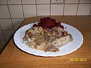 Filet z indyka duszony w sosie z owoców suszonych, do tego ryż pełnozianisty i surówka z młodej kapusty z marchewką, cebulą i jogurtem :-)
