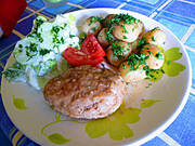 Dzisiaj: młode ziemniaki z koperkiem, kotlety mielone dla mnie pulpety i mizeria. Zupa cebulowa z grzanką dla chętnych.