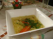 Rosół z makaronem, paleczki z kurczaka z piekarnika, ziemniaki, mizeria lub sałata w smietanie do wyboru.