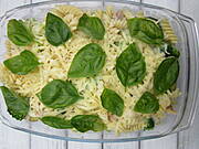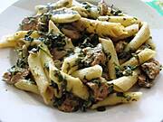 Makaron z piersią indyka, pieczarkami i szpinakiem