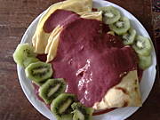 Dziś były naleśniki z dżemem truskawkowym, który wczoraj cały dzień produkowałam.
