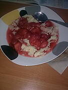 u mnie dzisiaj kluski z serem i truskawkami:)