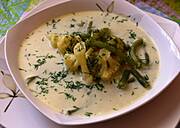 Zupa pieczarkowa a na drugie frytki, sola panierowana i kalafior polany masełkiem;)