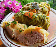 Wczoraj grochówka na wędzonych żeberkach. Dziś gołąbki z młodej kapusty.