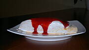 Jednakowoż to było "cuś w tej podobie", jak już ustaliłyśmy ;-) Spód bezowy był cienki i tylko na dole (tzn. nie "wychodził" na brzegi), a na tym było coś białego, może właśnie ubita śmietana. Chociaż miałam wrażenie, że to coś na bezowym spodzie jest dwuwarstwowe, ponieważ do pewnej wysokości było jakby żółtawe, a wyżej już białe. Pomiędzy tymi dwoma kolorami nie było nic. A najwyżej był mus z truskawek... Myślę, że biała część to była ubita śmietana, ale ten żółty kolor (lekko żółty, kremowy...) to już musiało być coś innego, albo jakiś dodatek do śmietany... Sama nie wiem. A może dodała mascarpone? Efekt jest taki, że od soboty myślę i główkuję jak to mogło być zrobione... ;-)