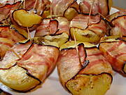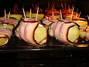 Beata, Ty miałaś nalewki robić! No kurde, ziemniaczki w boczkowych garniturkach, ociekające serem i tłuszczykiem.... O tej porze?! Serca nie masz, żeby tak kusić, toż ja śliny nie nadążam przełykac