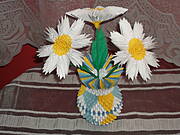 robiłam takie w środek kwiatków wklej koralik będzie ładniej wyglądać i zakryje łązenia kwiatka.