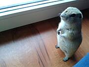 Śliczny ten susełek jest, napisz jak go oswoi:) Ciekawa jestem ile kosztuje takie zwierzątko.