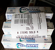 , pasta do zebow, opakowanie podrozne,za 4 pasty = 0,28 + podatek 0,41 = 0,69