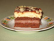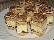 Spotkałam takie w cukierni i bardzo mi się spodobało.Złożone jest w chatkę jakby z ciasta karpatkowego i kremu ajerkoniakowego.
