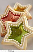 i pod obrazkiem pisało: "Żeby uzyskać efekt "witrażyków" w ciasteczkach, należy przed włożeniem do piekarnika wypełnić wycięte ciasteczka rozkruszonymi landrynkami". Ale czy to prawda to nie wiem bo jeszcze nie próbowałam, muszę wypróbować jak będę pierniki piec :)