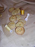 i ciasteczka kruche - guziki dla znajomej krawcowej (przepis nie mój,ale pozmieniałam ilości w składnikach i nie dodałam barwników jak w przepisie, jedynie suchy mak,dałam inny aromat...)