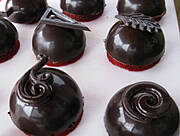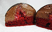 :)) No to moze jeszcze jeden wypiek, do przekrojenia podegrzalam noz, no bo latwiej kroic czekolade, ale nie przewidzialam, ze mus bedzie wygladac jak swieza watroba :((