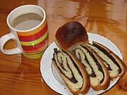 U nas w ramach odświeżania zakwasu chleb żytnio-pszenny z orzechami laskowymi i ziołami prowansalskimi (z przepisu "na oko") - dopiero co wystygł, nie mogłam się powstrzymać i pożarłam piętkę :)