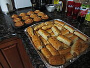 U mnie dzis muffiny, polowa z bananami a druga polowa z truskawkami ciasto wg przepisu http://wielkiezarcie.com/recipe62817.html i paszteciki z miesem wg wlasnego przepisu.