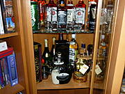 Zapomniałam jeszcze o Sheridanie :)Mysha nikt cie nie posadza,ja mam w piwnicy 2 pelne kartony alkoholu,jedna duza skrzynke drewniana plus w duzym pokoju w komodzie jedna polka.Kazdy by raczej tutaj znalazl cos dla siebie.Mam chyba z 3 lub 4 rodzeje whisky,butelka boubona czyli amerykanskiej whisky,win to nawet nie zlicze,ale mysle okolo 15 rodzajow jak nie wiecej,ze slodkich likierow to brzoskwiniowy,przywiezione z Teneryfy 2 butelki likieru bananowego,scheridans,malibu,z wodek ziolowych becherovka,jägermeister,zubrowka,kilka rodzajow czystej wodki,w tym Polska Debowa,nie pamietam ale od kogos dostalismy,absolut i finlandia zurawionowa,rum normalny i bialy (mam zaczety,bo robilam pinacolade kiedys,wiec kupilam) ajerkoniak i baileys,kilka butelek Prosecco roznego,Limoncello,2 rodzaje sliwowicy,jedna w fajnej karafce przywieziona z Chorwacji,wisniowka,turecka raki i greckie ouzo,mam tez butelke absyntu,kilka butelek wina musujacego bialego i czerwone tez znalazlam ,jak robilam porzadki,mam glühwein(czerwone wino do grzania z przyprawami) i szwedzki glögg do podgrzania,zaczeta butelka grand marnier,czasem dodaje do kremow do ciasta,butelka porto i 2 butelki sherry,no i tylko jedna butelka zostala mi eiswein,ktory bardzo lubie-wino produkowane z winogron zebranych po pierwszych przymrozkach,cena tego wina jest dosc wysoka,a butelki sa przewaznie cienkie i dlugie i czesto zawieraja tylko 300ml,na pewno cos pominelam.Duzo z tych alkoholi sa podarunkami,a ze raczej malo pijemy,wiec dlatego sie tyle nazbieralo.