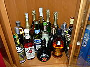 Mysha nikt cie nie posadza,ja mam w piwnicy 2 pelne kartony alkoholu,jedna duza skrzynke drewniana plus w duzym pokoju w komodzie jedna polka.Kazdy by raczej tutaj znalazl cos dla siebie.Mam chyba z 3 lub 4 rodzeje whisky,butelka boubona czyli amerykanskiej whisky,win to nawet nie zlicze,ale mysle okolo 15 rodzajow jak nie wiecej,ze slodkich likierow to brzoskwiniowy,przywiezione z Teneryfy 2 butelki likieru bananowego,scheridans,malibu,z wodek ziolowych becherovka,jägermeister,zubrowka,kilka rodzajow czystej wodki,w tym Polska Debowa,nie pamietam ale od kogos dostalismy,absolut i finlandia zurawionowa,rum normalny i bialy (mam zaczety,bo robilam pinacolade kiedys,wiec kupilam) ajerkoniak i baileys,kilka butelek Prosecco roznego,Limoncello,2 rodzaje sliwowicy,jedna w fajnej karafce przywieziona z Chorwacji,wisniowka,turecka raki i greckie ouzo,mam tez butelke absyntu,kilka butelek wina musujacego bialego i czerwone tez znalazlam ,jak robilam porzadki,mam glühwein(czerwone wino do grzania z przyprawami) i szwedzki glögg do podgrzania,zaczeta butelka grand marnier,czasem dodaje do kremow do ciasta,butelka porto i 2 butelki sherry,no i tylko jedna butelka zostala mi eiswein,ktory bardzo lubie-wino produkowane z winogron zebranych po pierwszych przymrozkach,cena tego wina jest dosc wysoka,a butelki sa przewaznie cienkie i dlugie i czesto zawieraja tylko 300ml,na pewno cos pominelam.Duzo z tych alkoholi sa podarunkami,a ze raczej malo pijemy,wiec dlatego sie tyle nazbieralo.