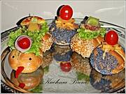 Od siebie podsunę tę zakąskę.http://wielkiezarcie.com/recipe46317.html. Kapitalnie wygląda na talerzu i jest na jednego kęsa.