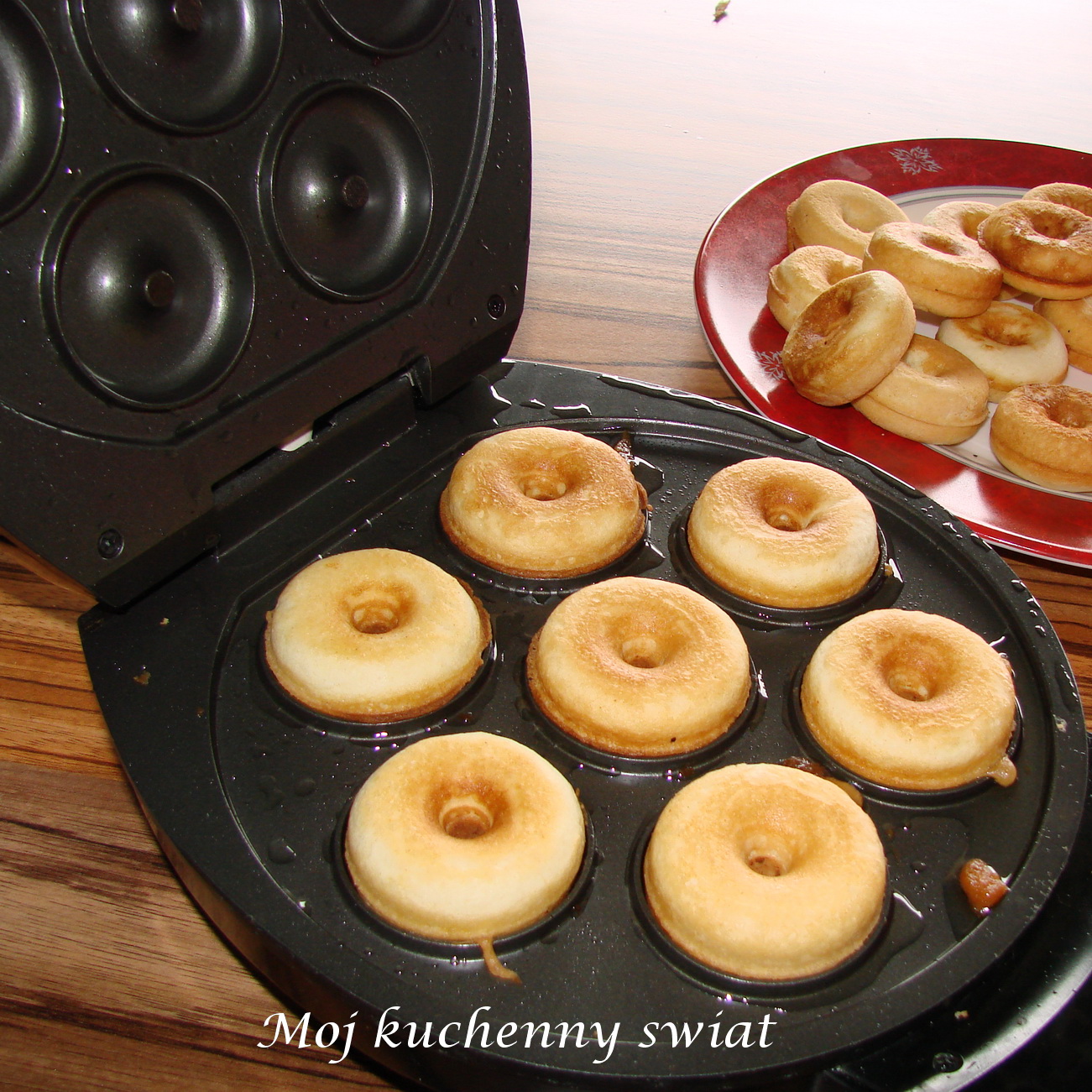 Przepis jest super tylko pierwsza blaszka mi troche nie wyszla tzn mimo ze byla nasmarowana to sie poprzyklejaly ale przy nastepnej postanowilam troszke dluzej potrzymc je w mojej maszynce(ok 6 min) i okazalo sie ze o to chodzilo,reszta wychodzila piekna i bardzo smaczna.Widocznie moja maszynka potrzebuje ze 2 minutki wiecej czasu.Bardzo Ci dziekuje za przepis.Moja corusia zaklada sobie donutsa na paluszek i obgryza ze smakiem jeden za drugim;)))