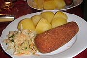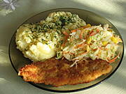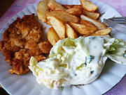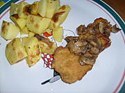 ziemniaki z pieca, pierś z kurczaka panierowana z pieczarkami ...