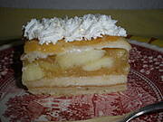 śmietaną, śmietanką, cukrem i sokiem z cytryny. Do tego pokrojone banany z