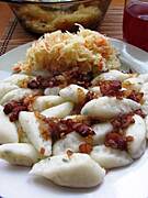 Pyszności, a u mnie mniej wykwintnie, okraszone kopytka i surówka z kapusty